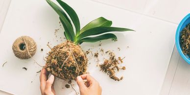Kokedama is the Japanese stle of gardening that encapsulates the root ball in moss and suspends the plant. The process may be a bit messy, but it’s great fun.
